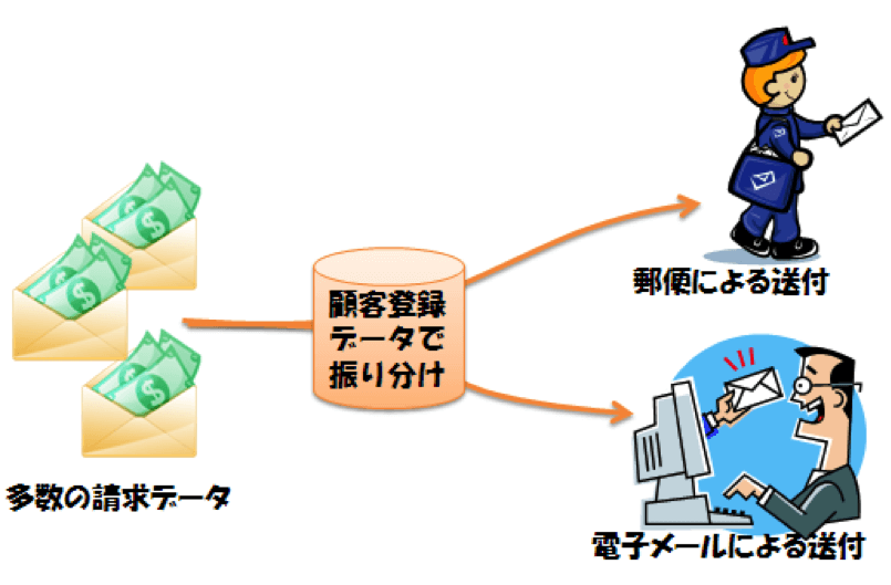 これらの複数の通信メディアを、請求する側が勝手に統一することはできません。顧客の希望する通信手段を事前に登録しておりた上で、顧客ごとに異なる通信手段に振り分けて請求書を送付する必要があります。