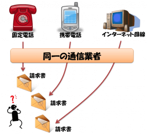 しかし、顧客の観点からすると、固定電話、携帯電話、インターネット回線などを同系列の通信業者からサービスを受けていたとしても、請求書は、ばらばらに発行され、決済が大変煩雑な状況に変わりはありません。