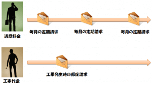 このように請求処理には、多様なパターンがあり、かつ、複数のパターンの組み合わせが発生する場合があります。例えば、電話料金の請求において、通話料金は毎月の定期請求ですが、回線の工事費は都度請求になるといったような場合が考えられます。